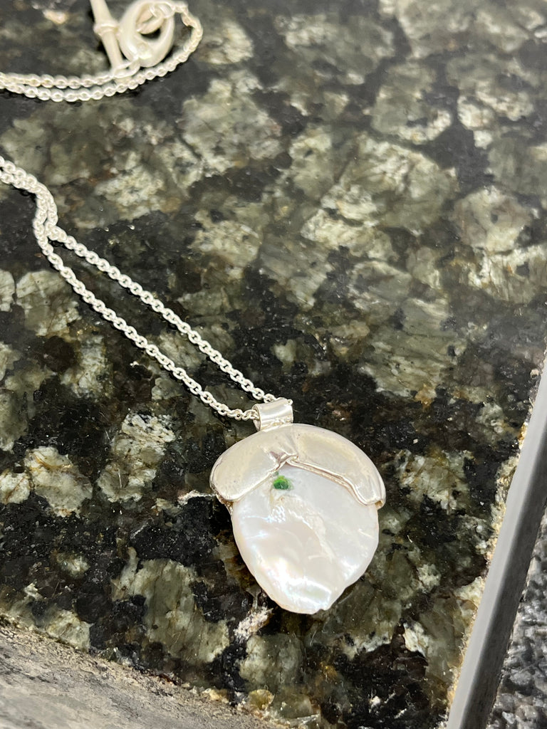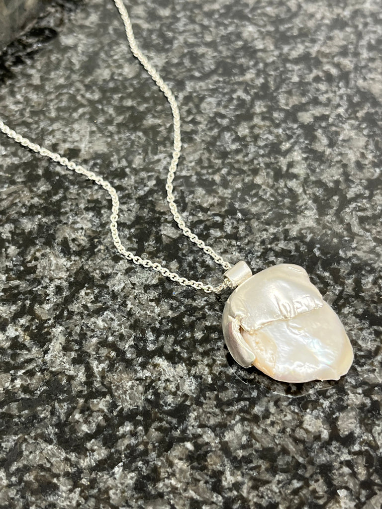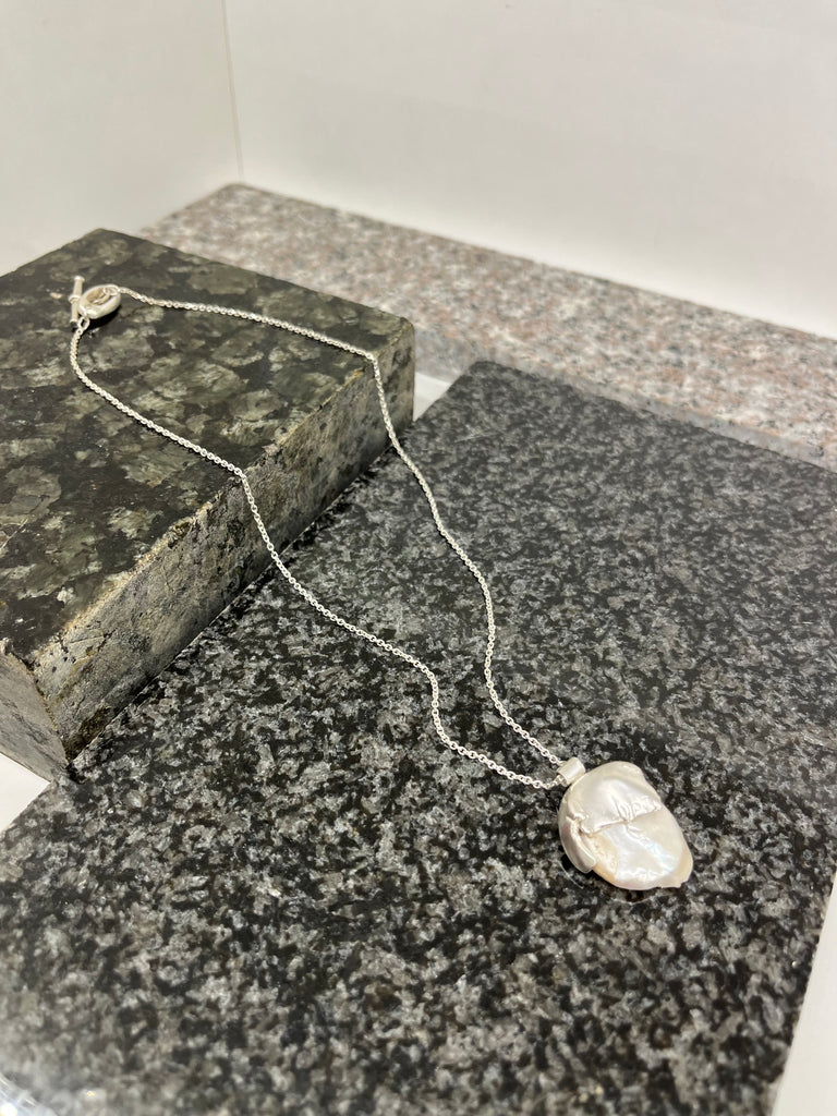 Ezüst nyaklánc nagyméretű, amorf tenyésztett édesv